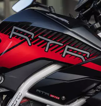 RTR 310 è una naked sportiva pensata per la guida urbana e dinamica, con una posizione di guida più eretta e un’estetica aggressiva, pur mantenendo lo stesso motore da 312,2 cc.