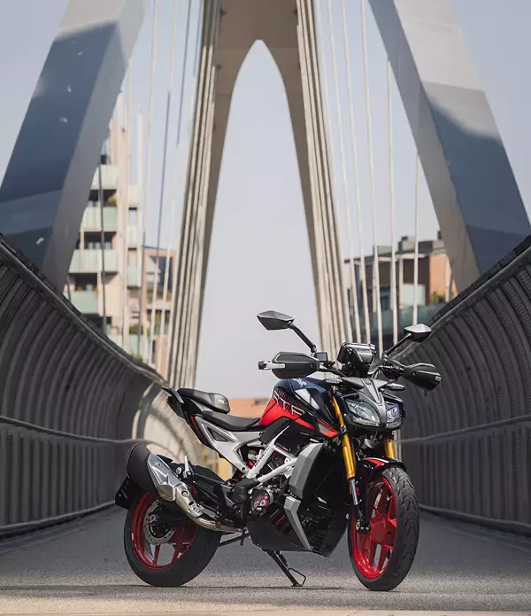 Grazie alla sella sdoppiata flottante, sospensioni KYB (nella versione Plus/BTO) regolabili e quickshifter bidirezionale, RTR 310 offre comfort anche su tratti urbani o sconnessi.